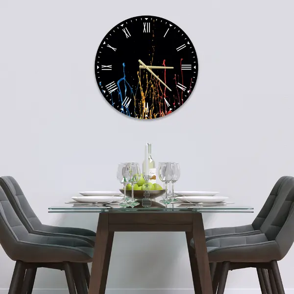 Glass Clock in Black Rainbow Smoke - 30cm Wide