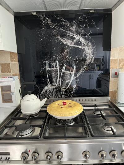 This is a Digital Print Splashback in our "Champagne Toast" design.
