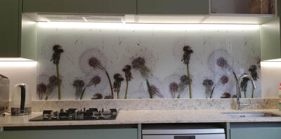 This is a Digital Print Splashback in our "Dandelion Clocks" design.
